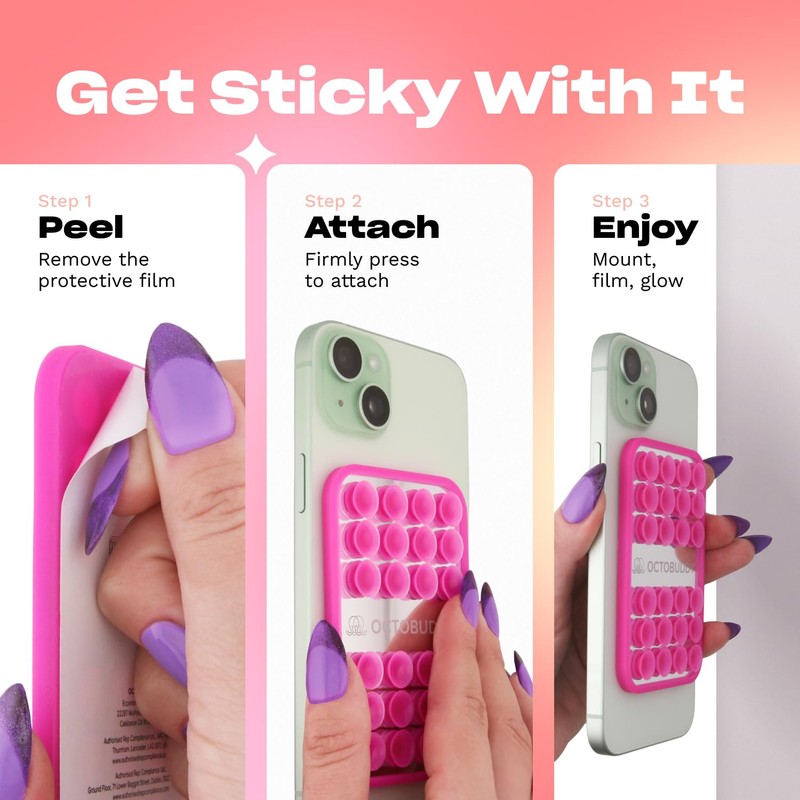 - Safe grip vibes without the drop drama: Built to last and made to move, the adhesive pad sticks to your phone while 24 suction cups grip smooth, clean tiles, windows, doors, desks, or boards