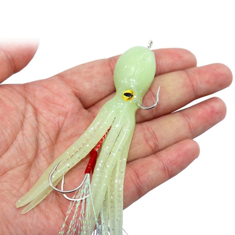 - ▲ WIDE APPLICATION Soft octopus bait can be used for catching lingcod, bass, mandarin fish, etc. The metal block inside the head of the octopus jig ensures a large casting distance, especially in salt water such as deep sea fishing and rock fishing