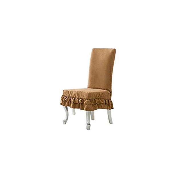 Octorose Heavy Duty Soft Micro Suede Shortly Double Ruffle Skirt Dining Chair Cover 1pc (Camel)
