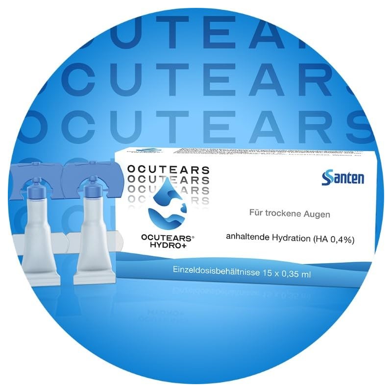 • Ocutears HYDRO+ contains highly concentrated, cross-linked hyaluronic acid, which mimics the principle of action of natural tears for active protection against drying out of the eye surface.
