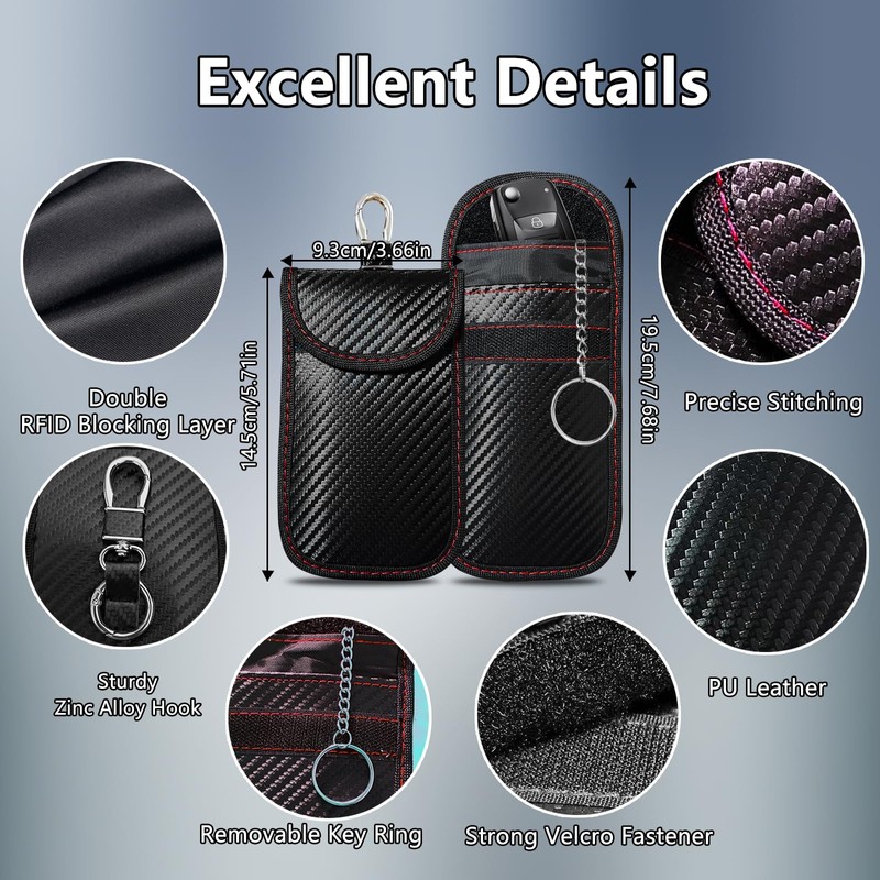 • 【Comprehensive Protection】The faraday box outer layer features carbon fiber leather for superior abrasion resistance, while the inner double-layer signal-blocking material delivers comprehensive anti-theft protection. Metal fasteners ensure a perfect seal, effectively blocking external interference and safeguarding against unauthorized signal interception.