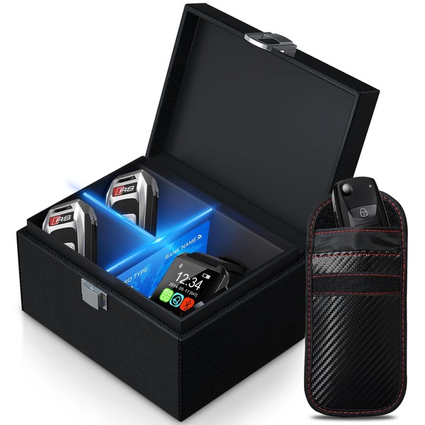 ocuvaep Faraday Box with Faraday Bags for Car Keys, Faraday Key Fob Protector, Faraday Cage Key Fob Signal Blocker, Signal Blocking Box for Car Keys