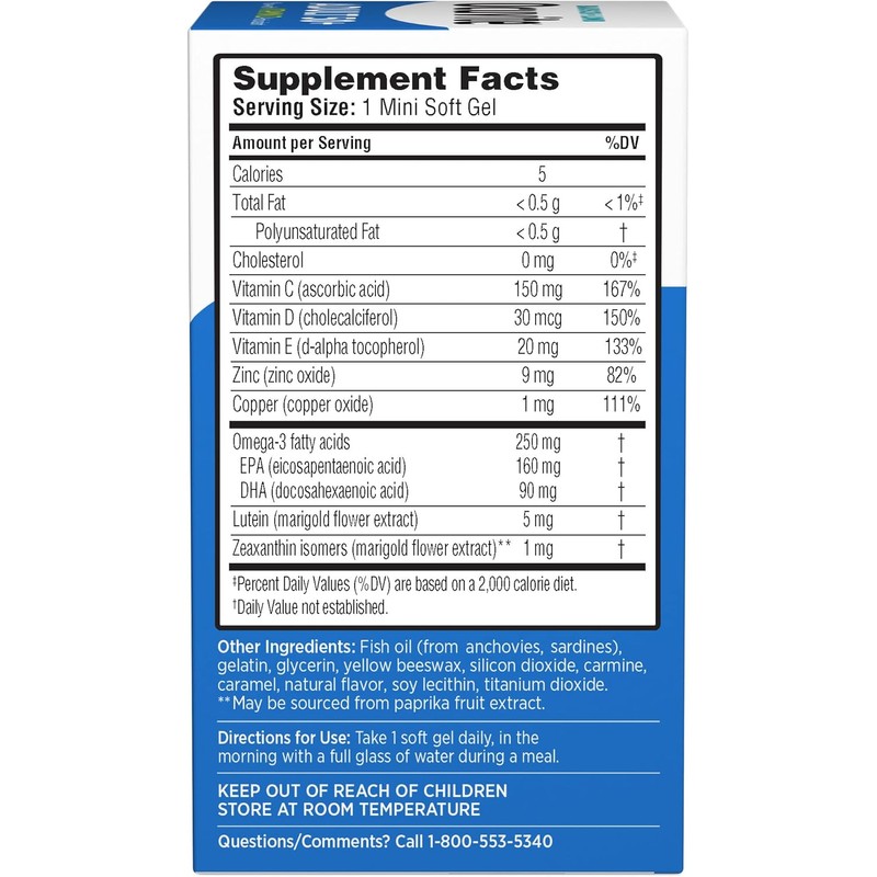 - OCUVITE ADULT 50+ EYE VITAMINS: Helps support eye health & replenish essential eye nutrients that you can lose as you age, with Lutein, Zeaxanthin, omega-3, zinc, copper, vitamin C & vitamin E. Eye Nutrition for Today.