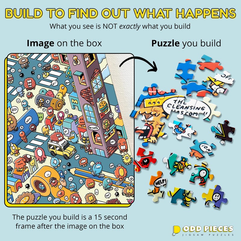 - Mystery Puzzles by Odd Pieces - A premier 1000 piece puzzle for adults, kids, and the whole family that blends elements from comics, Where's Waldo books, and mysteries to create the most exciting, brain teasing puzzling experience yet!