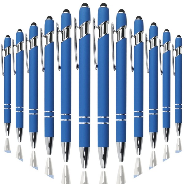 Oddmoal Ballpoint Pen with Stylus Tip, Soft Touch Click Metal Pen, 1.0mm Medium Point, Black Ink, 12 Count(Blue)