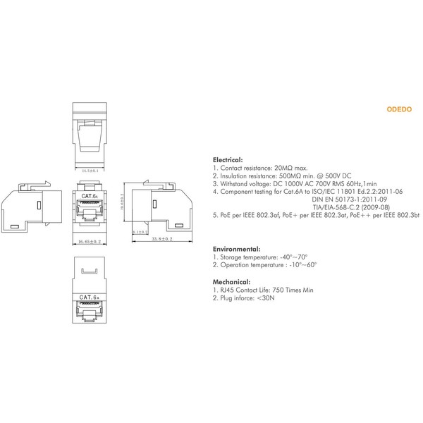 odedo 2x Keystone CAT 6A RJ45 Coupling Angled Network Connector 2x RJ 45 Socket