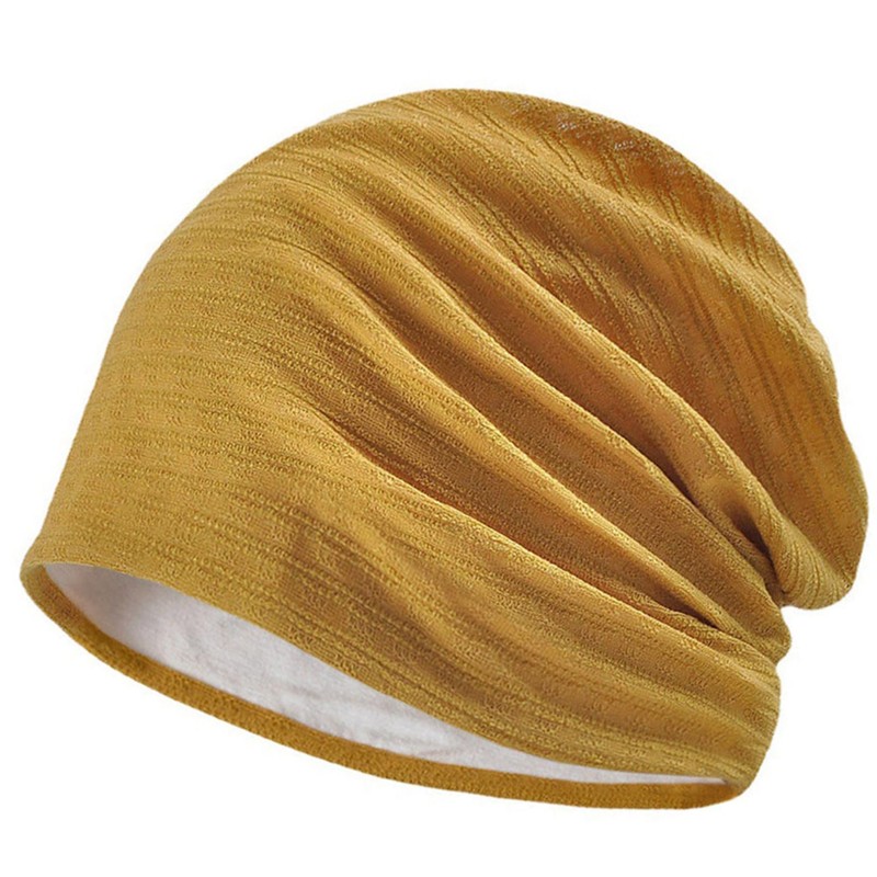 [Odejaa] ニット帽 薄手 ケア帽子 吸汗通気 冷房対策 ニットキャップ おしゃれ ゆったり サマーニット ニットキャップ ビーニー おしゃれ 肌に優しい 締め付け感ゼロ オールシーズン ストレッチ性 柔らかい 綿 無地 メンズ レディース (JP, アルファベット, L, 3XL, 春、夏、秋に向けて, 黄色)