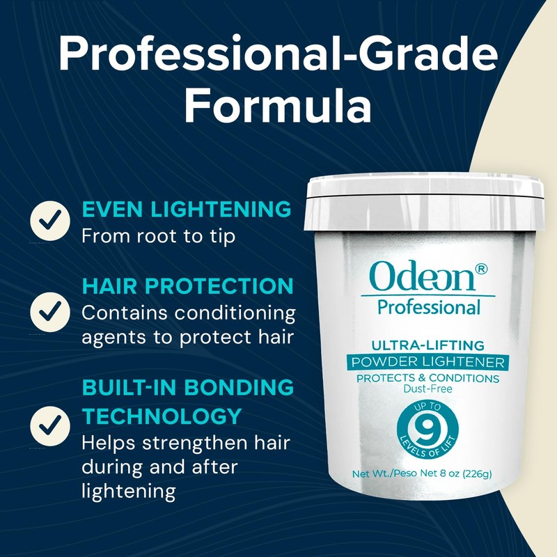 - Professional-Grade Hair Highlight Powder: Odeon Professional Ultra-Lifting Powder Lightener lifts hair up to 9 levels, ensuring stunning color transformations for all hair types