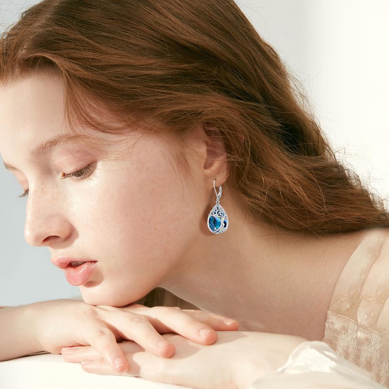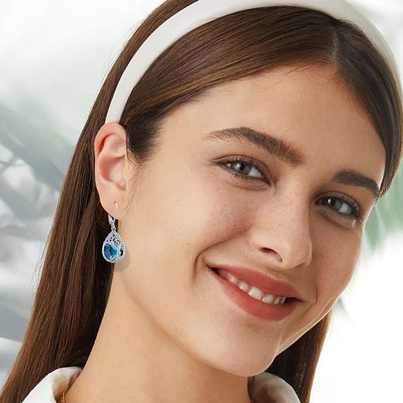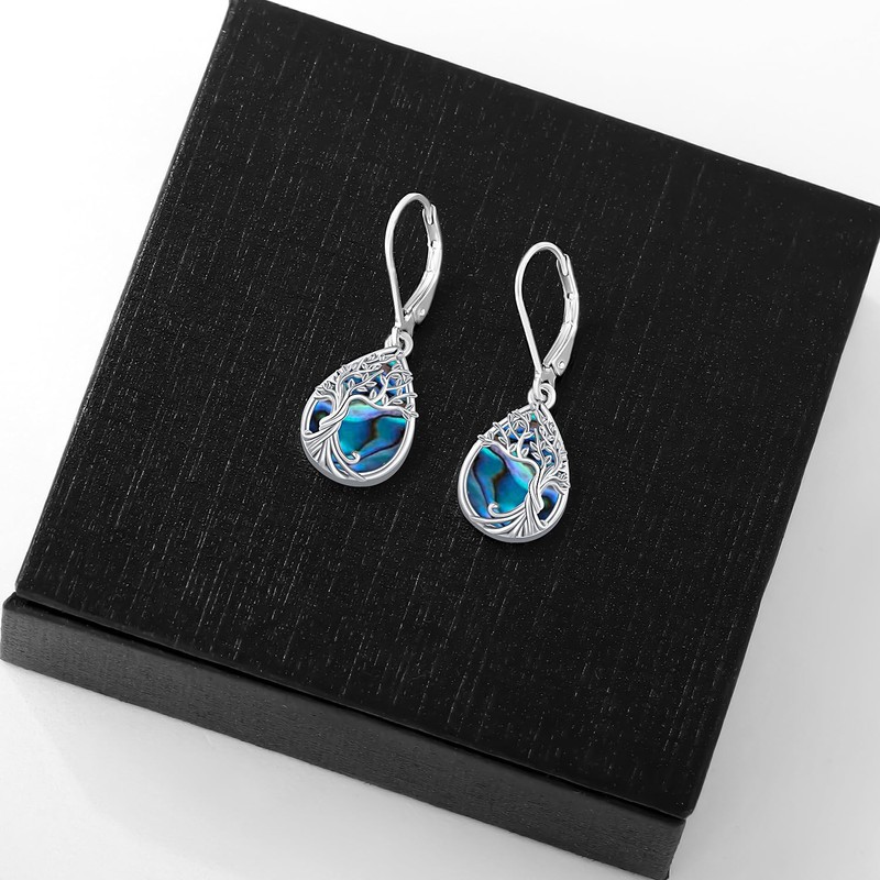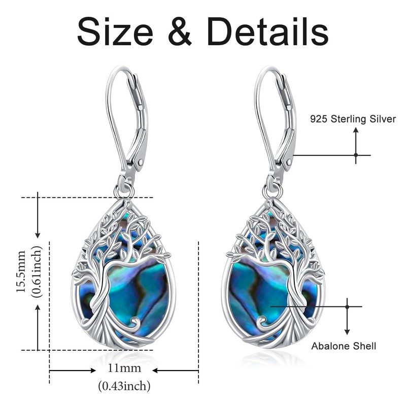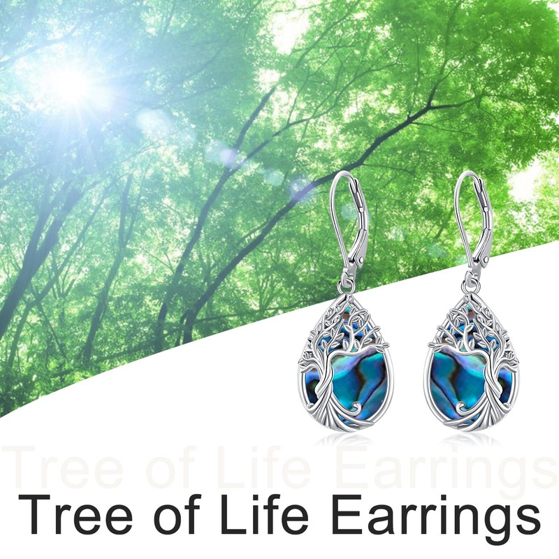 Odinstone Tree of Life Abalone Shell Earrings Teardrop Dangle Drop Leverback Earrings 925 Sterling Silver Hypoallergenic Family Tree of Life Earrings Jewelry for Women