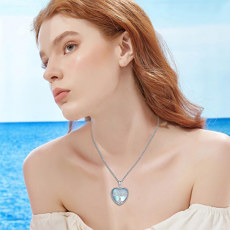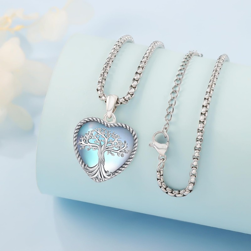 Odinstone Tree of Life Necklace 925 Sterling Silver Heart Tree Pendant Women Family Moonstone Jewellery Mothers Day Anniversary Birthday Gifts for Mum Girl