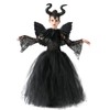 Odizli Maleficent Costume Kids Girls Halloween Evil Queen Fancy Dress Up Handmade Knitted Tulle Princess Dress + Horns + Wing Carnival Party World Book Day Witch Devil Cosplay Black Green 2-3 Years