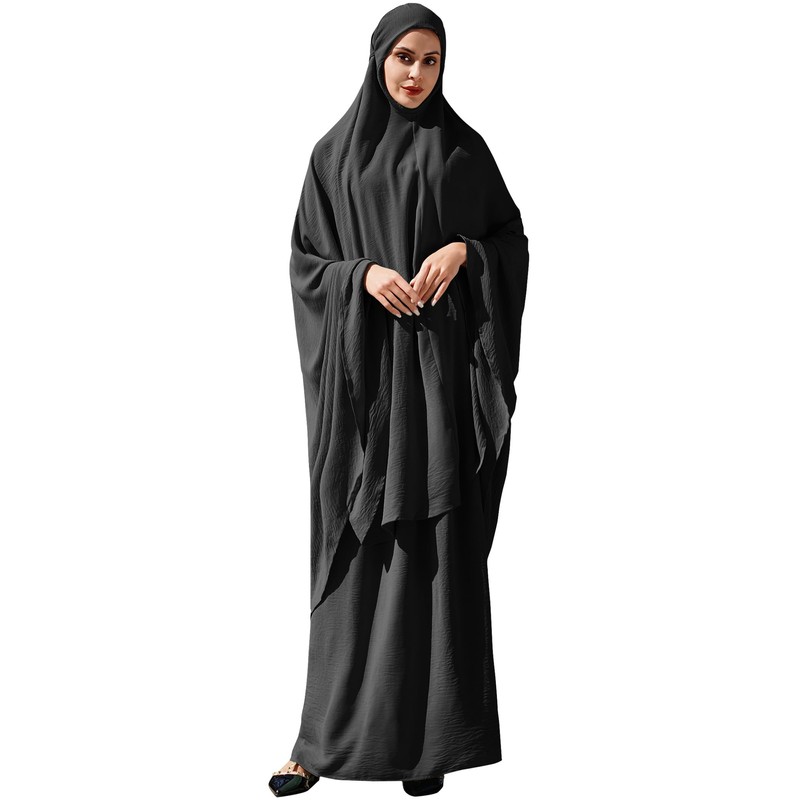 - Muslim Islamic two-piece outfits hijab dress abaya kaftan and loose skirt for women, helps you create a simple and conservative look among the people.