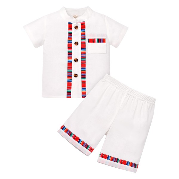 - Package Include: 1PC Shirt and 1PC Shorts; Short Sleeve, Stand Collar, Embroidery, Solid Color, Chest Pocket, Button Closure, Elastic Waistband, Loose Fit; Infants Toddlers Kids Boys Mexican 2 Pieces Outfits Short Sleeve Button Down Shirt and Shorts.
