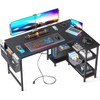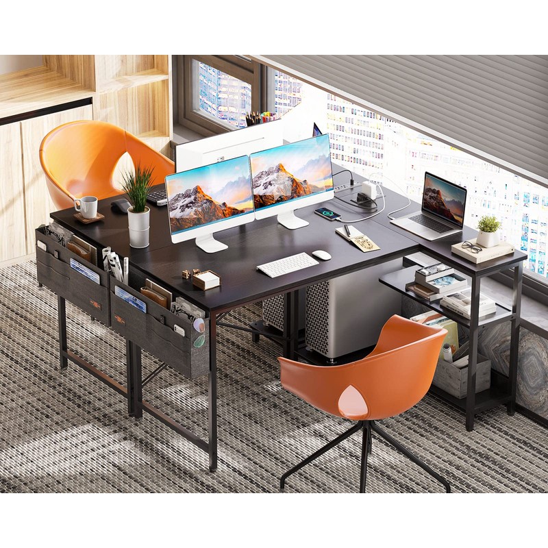ODK 48 Inch Small L Shaped Gaming Computer Desk with Power Outlets, Reversible Storage Shelves & PC Stand for Home Office, Simple Writing Study Table with Storage Bag for Small Space, Black
