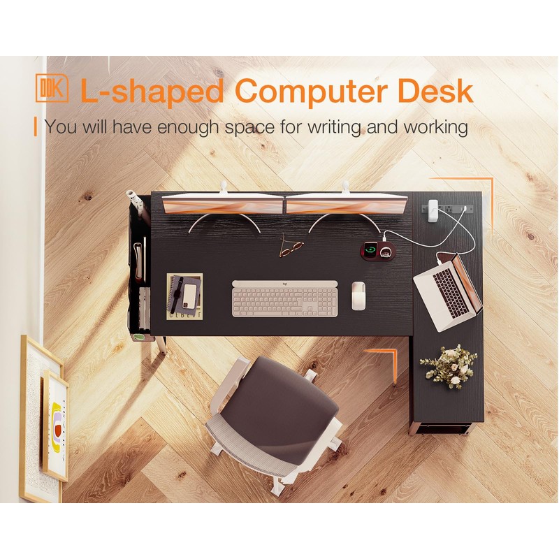 - 【Power Outlets & USB Charging Ports】 ODK L shaped computer desk is equipped with 3 Power outlets & 1 USB charging port & 1 Type C port for your electronic devices, you can easily and conveniently charge your smart phone, gaming gear or Bluetooth devices when you are working or playing games.
