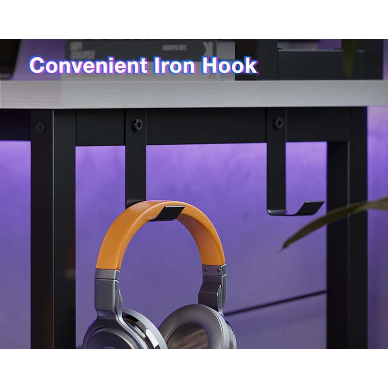 - 【CPU Stand & Iron Hook】: The cpu stand on the left can store your computer tower and notebooks, office supplies, green plants.The iron hook on the right is designed to hang your headphone. Both of the two sides meet your storage needs in home or office.