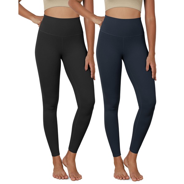 ODODOS 2-Pack Buttery Soft Lounge Yoga Leggings for Women 7/8 Length 25" High Waist Yoga Pants, Black+Deep Navy, X-Small