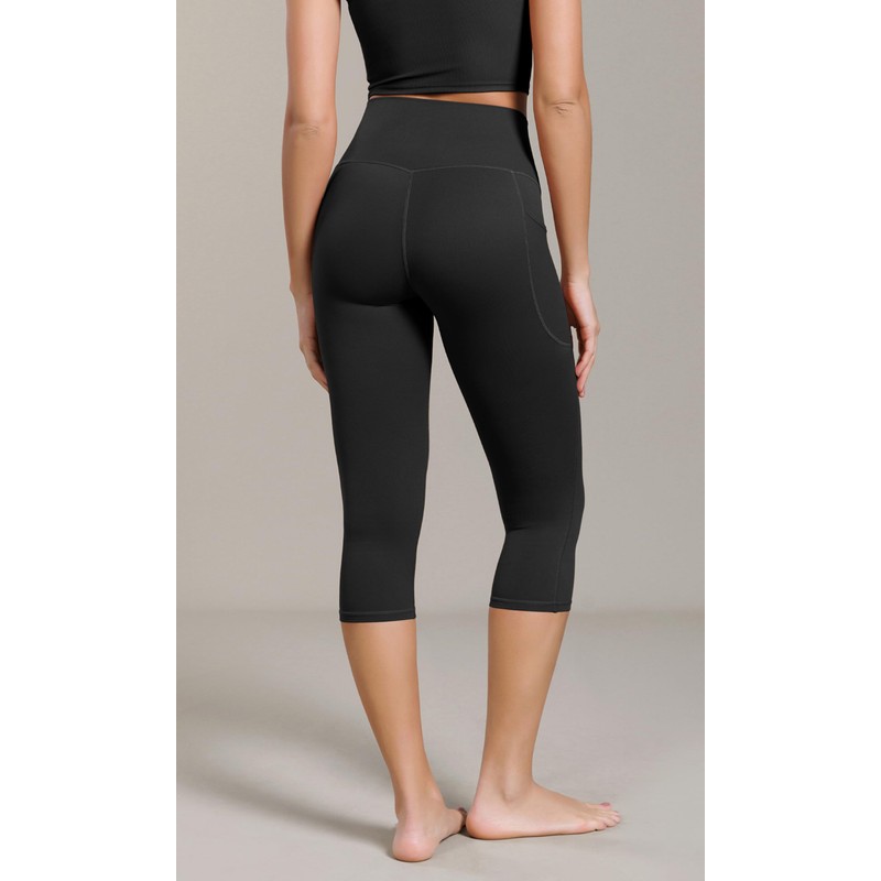 ODODOS Buttery Soft Lounge Yoga Capris with Pockets for Women 19" High Waist Capri Leggings, Black, Large