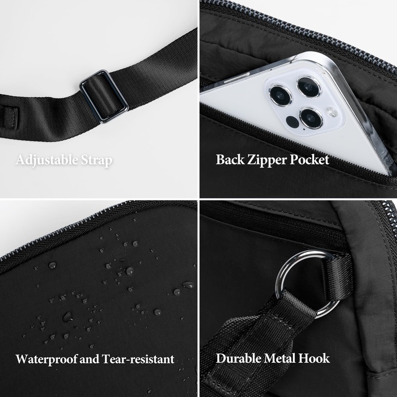 - Functional: Lightweight and easy to carry, room for phone, wallet, keys and other small items; Secure back zipper pocket to hold your belongings like keys, passports, ids, and cards while traveling or workout.