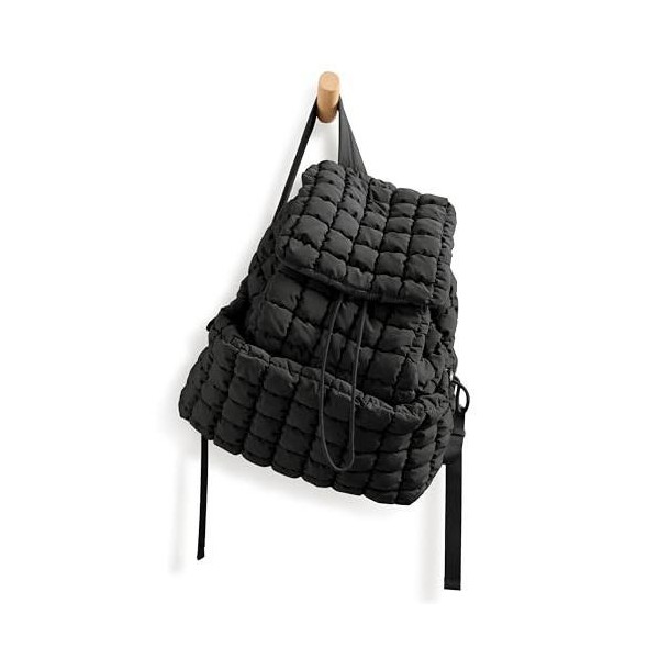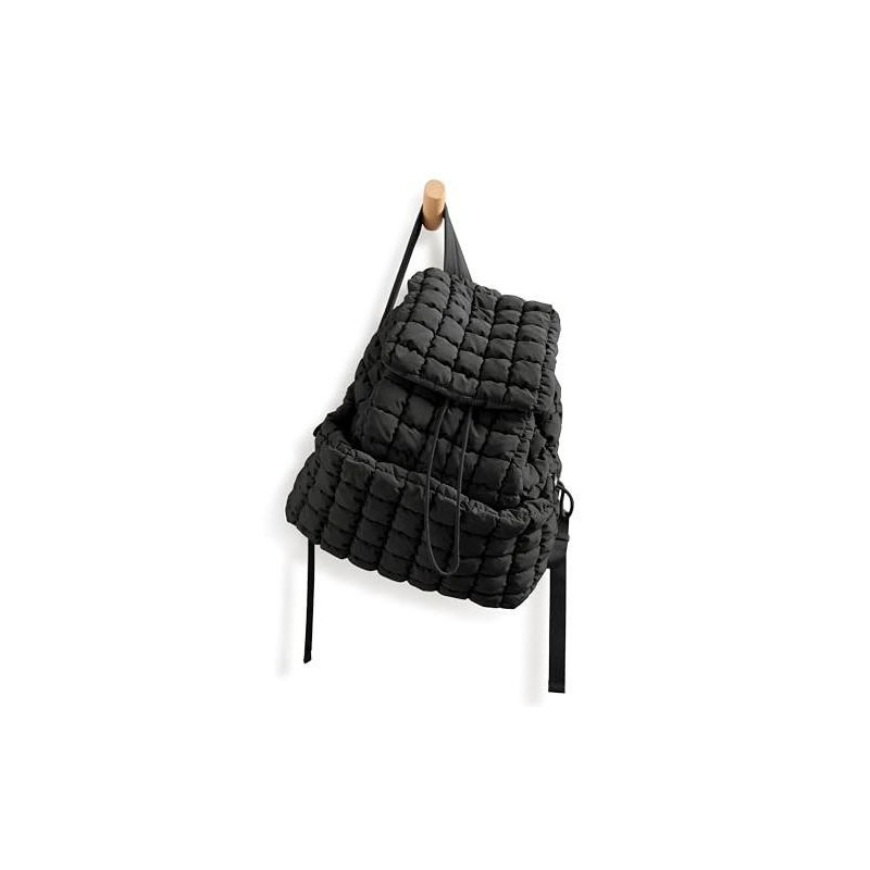 ODODOS Quilted Backpack for Women Lightweight Puffer Hiker Pack Drawstring Padding Travel Gym Bag - color: Black