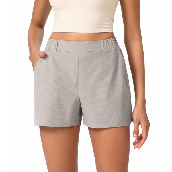 ODODOS Stretch Woven Relaxed Shorts for Women Elastic High Waist Summer Lightweight Casual Shorts with Pockets, Light Gray, X-Large