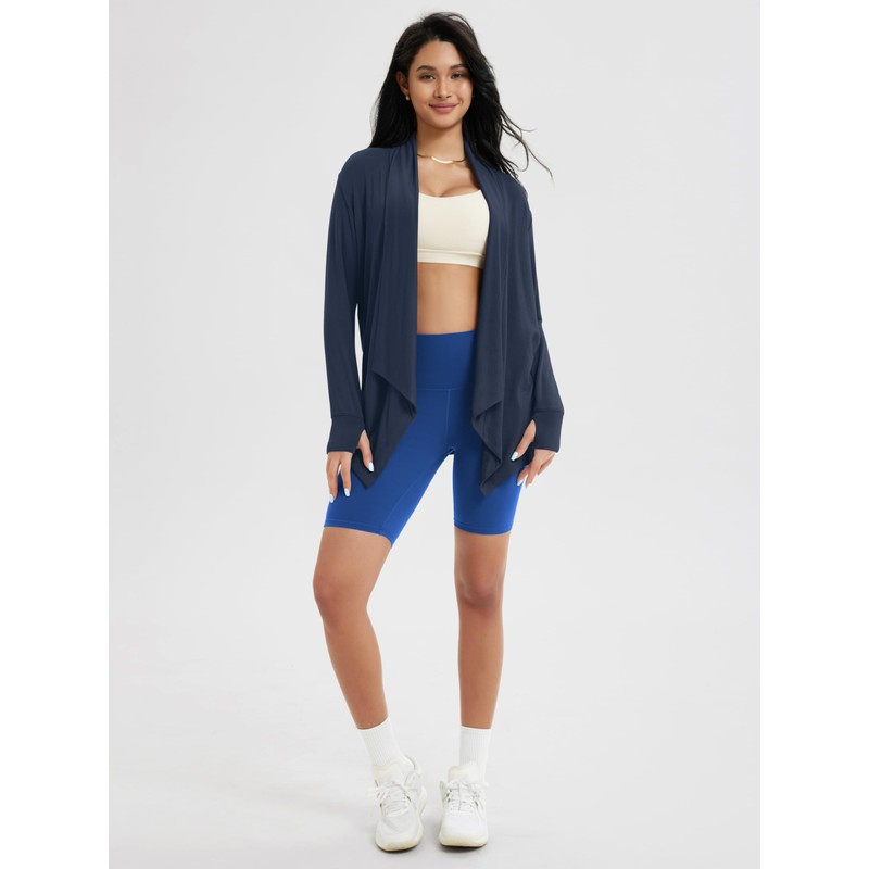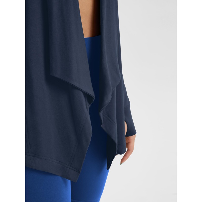 - Drape & Thumb Holes: Front open with irregular hem that droops naturally folds; Long sleeve with thumb holes keep the arms covered with a stay-put fit.