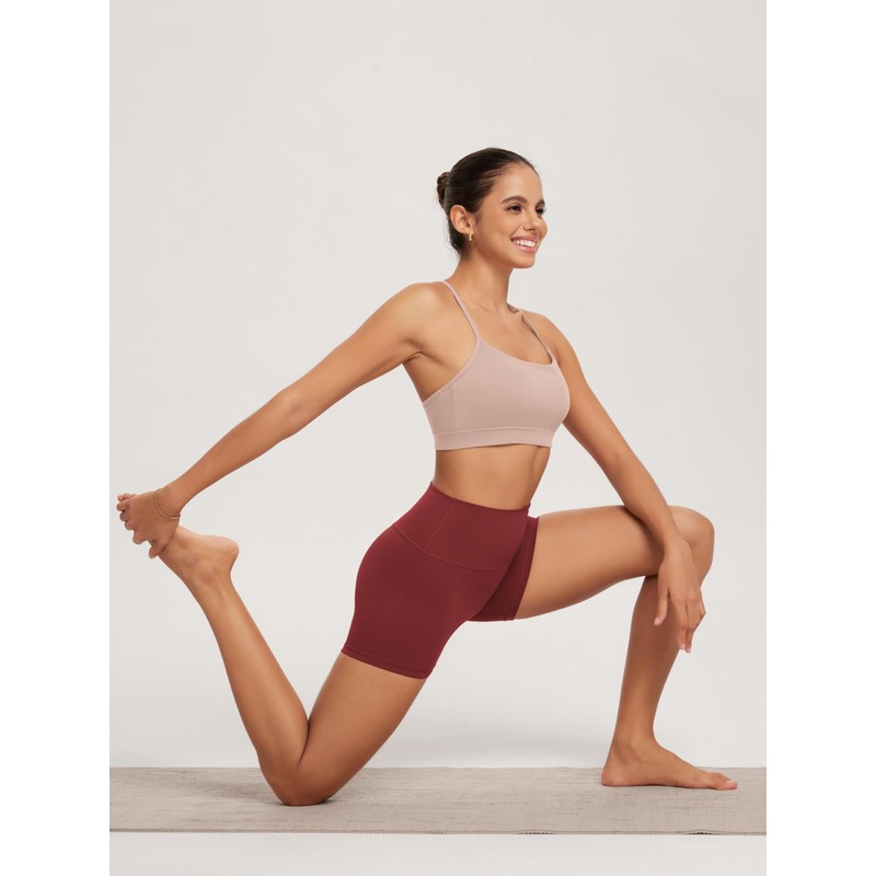 The high-rise yoga shorts are cut from buttery soft and stretchy fabric with a 4 inch inseam for a comfortable fit that moves with you. Squat proof and lightweight fabric fits you like a second skin. Sleek, sweat-wicking performance fabric for no fur stick to.