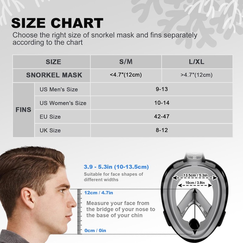 - Multiple Size Options: This Snorkeling packages is perfect for diving beginners, snorkeling fans, whether men, women, teenagers. To ensure your underwater experience, please choose the size that suits you according to our size chart.
