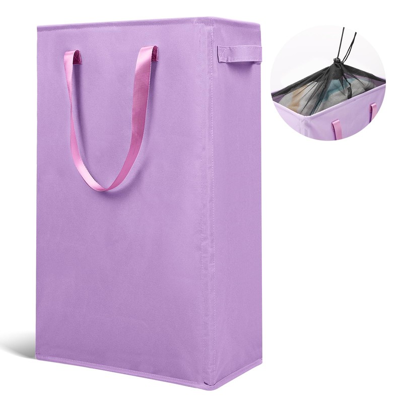 Odonata Slim Laundry Hamper Handles Collapsible Laundry Basket Thin Dirty Clothes Basket Narrow Laundry Bag Foldable Dirty Hamper 45L (Light Purple)