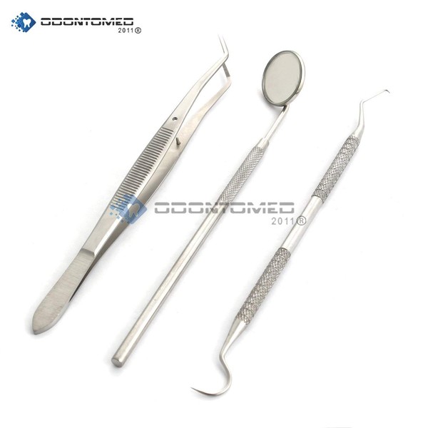 - SET INCLUDES: EXAMINATION MIRROR, DOUBLE SIDED PICK/PROBE, AND BENT COLLEGE TWEEZERS