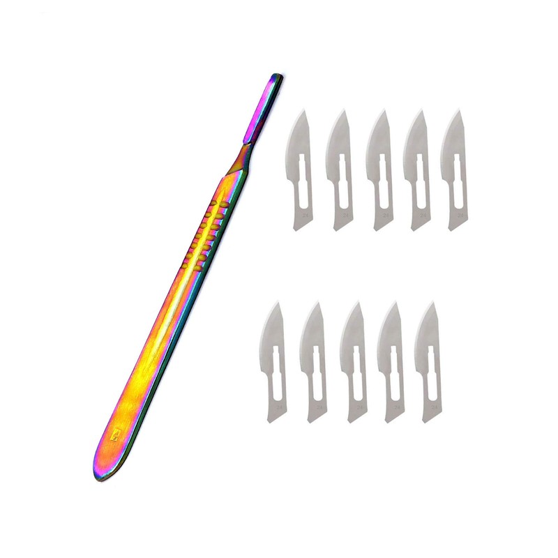 - 1 Pc Scalpel Handle #4 Multi Rainbow Color + 10 Pcs Sterile Blade # 24