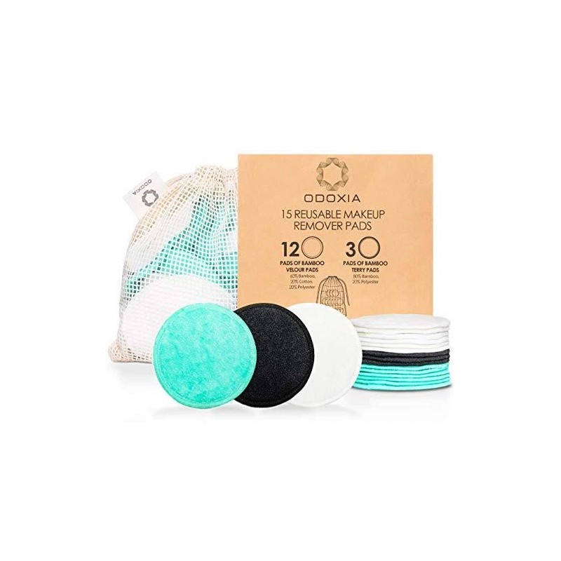 ¿Por qué deberías usar almohadillas reutilizables para eliminar maquillaje. Nuestra cultura de desechos se ha convertido en un problema grave y es hora de cambiar algunos hábitos y reemplazar artículos de un solo uso por productos más ecológicos. Todo el mundo puede contribuir al cambio que nuestro planeta necesita y cada pequeña acción ayuda. Usar paños de maquillaje reutilizables es un simple intercambio para hacer algo bueno para el medio ambiente y también para tu cartera. Con nuestras almohadillas de extracción lavables, no tienes que renunciar a la comodidad de las almohadillas de algodón de un solo uso. Mantendrán tu piel pero también nuestro planeta limpio. El juego de almohadillas para cosméticos Odoxia incluye: 12 almohadillas de terciopelo suave de bambú (60% viscosa, 20% algodón, 20% poliéster). 3 almohadillas de rizo de bambú (80% viscosa, 20% poliéster Una bolsa de malla de algodón 100%. Ideal para: Eliminación del maquillaje de cara y ojos Limpia tu piel Todos los tipos de piel, incluso la piel sensible del bebé. ¿Por qué bambú? Es un recurso sostenible, naturalmente renovable Solo requiere poca agua para crecer Las almohadillas de maquillaje son lavables a 100 a 140 grados. Una gran manera de reducir los residuos domésticos.