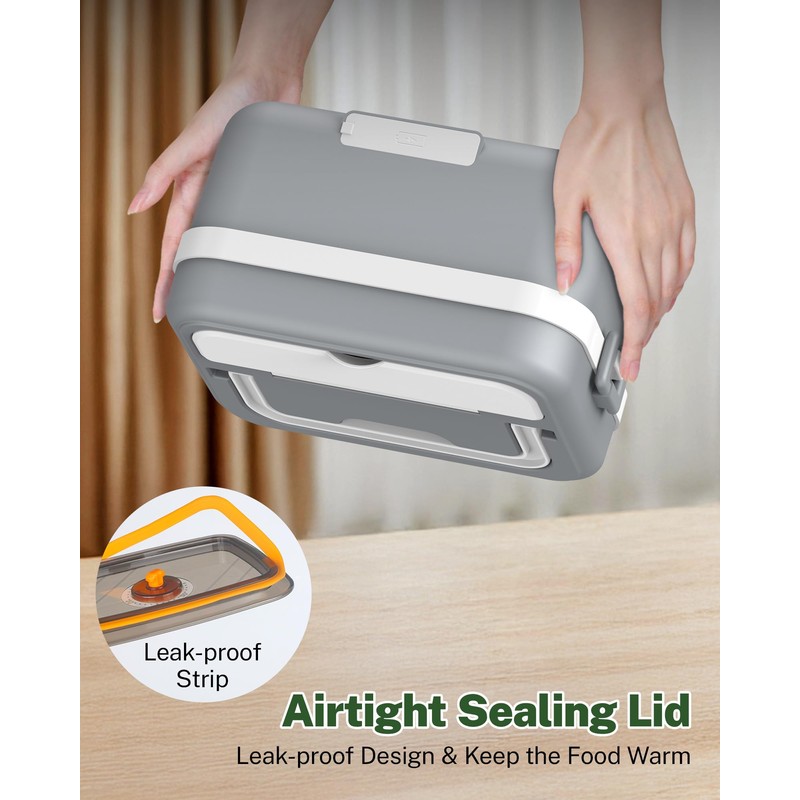 - [Adjustable Temperature & Keep Warm] -- The rechargeable electric lunch box for adults delivers 60W of power, higher than most products on the market, ensuring even heating. the food warmer offers adjustable temperature settings (194/185/176/167/158/149℉) and heating times (20/30/40/50/60 minutes). After heating, it automatically switches to keep warm mode.