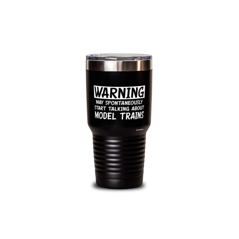 ODTGifts Funny Model Trains Tumbler Warning May Spontaneously Start Talking About Model Trains 30oz Stainless Steel Black