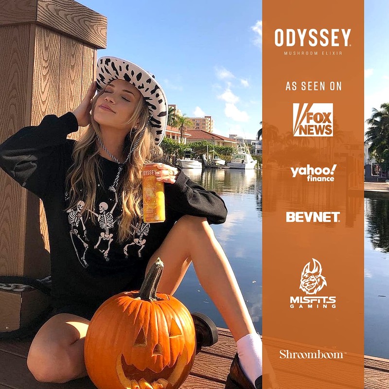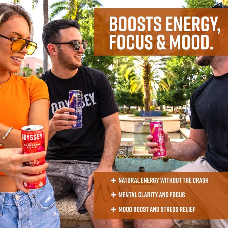 ODYSSEY ELIXIR - Sparkling Energy Mushroom Drink - Lions Mane & Cordyceps - Mental Focus & Stress Relief - Mushroom Coffee Alternative - Organic Caffeine - Adaptogens - Orange Ginger - 12oz / 12 Pack