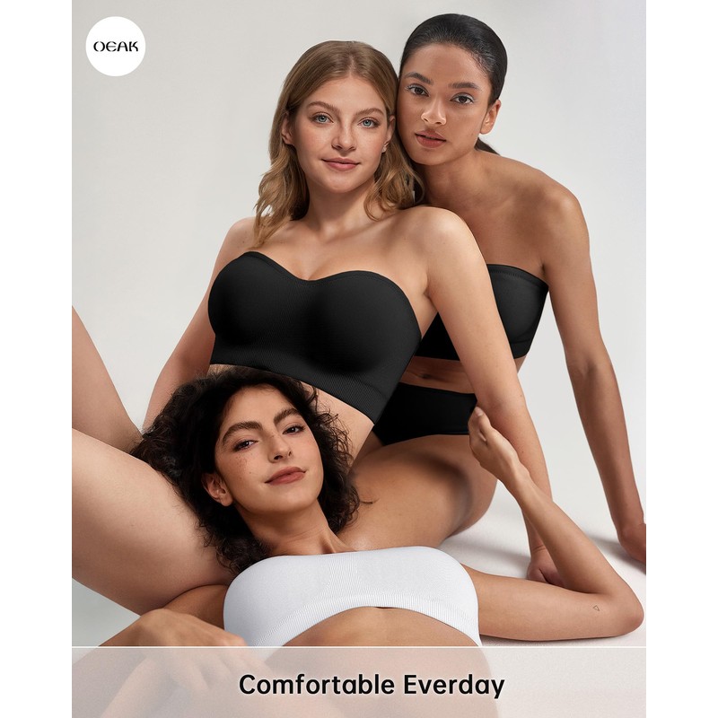 OEAK Strapless Bras for Women Wireless Bandeau Bra Non Slip Push Up Tube Top Seamless Bras Comfortable Padded Bralette Black XL