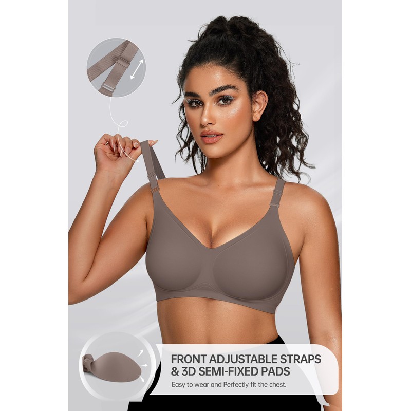 ✔Features: Seamless, Wirefree, Full Coverage, Adjustable Straps, Jelly Strip, V Neck