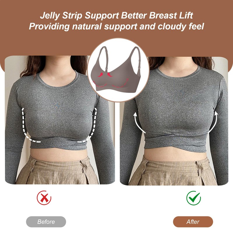 - Everyday Bras with Natural Lifting - The Jelly Strip Invisible Bra is designed with consideration for the aesthetic appeal of the breast contour, providing a natural lifting effect. It conceals enough and even feels like a sports bra during low-impact sports. This bra not only enhances the beauty of the breast contour but also effectively improves the shape of the breasts for both younger and older women.