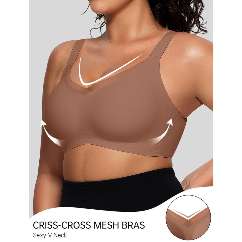 - Sexy V Neck Bras for Women - The crossover bra is decorated with delicate criss-cross mesh detail which adds a touch of feminine elegance to the front side, making it truly flattering and charming in its aesthetic appeal. The deep V neck design accentuates and enhances your natural curves beautifully.