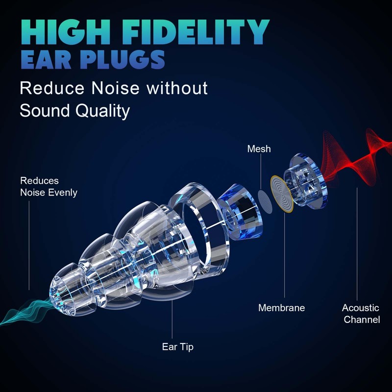 - CONCERT EAR PLUGS - Our earplugs are High Fidelity noise redution earplugs. Reduces harmful decibels. Protect your ears in noisy environments without compromising sound quality. This way, you can better enjoy music, festivals, and live events.