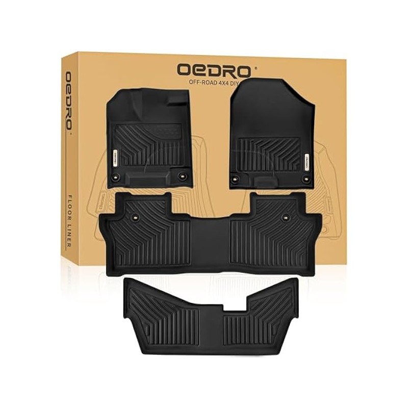 OEDRO Floor Mats for Honda Pilot 8 Passenger (No Elite Models) 2016-2022 All-Weather TPE Waterproof Floor Liners Includes 1st, 2nd and 3rd Row: Full Set Black Car Accessories