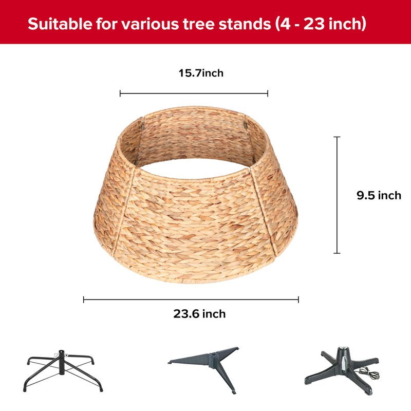 OEHID Christmas Tree Collar, Wicker Christmas Tree Collars for Artificial Trees, Decorative Base Cover for Holiday Trees (23.6 inch, Water Hyacinth)