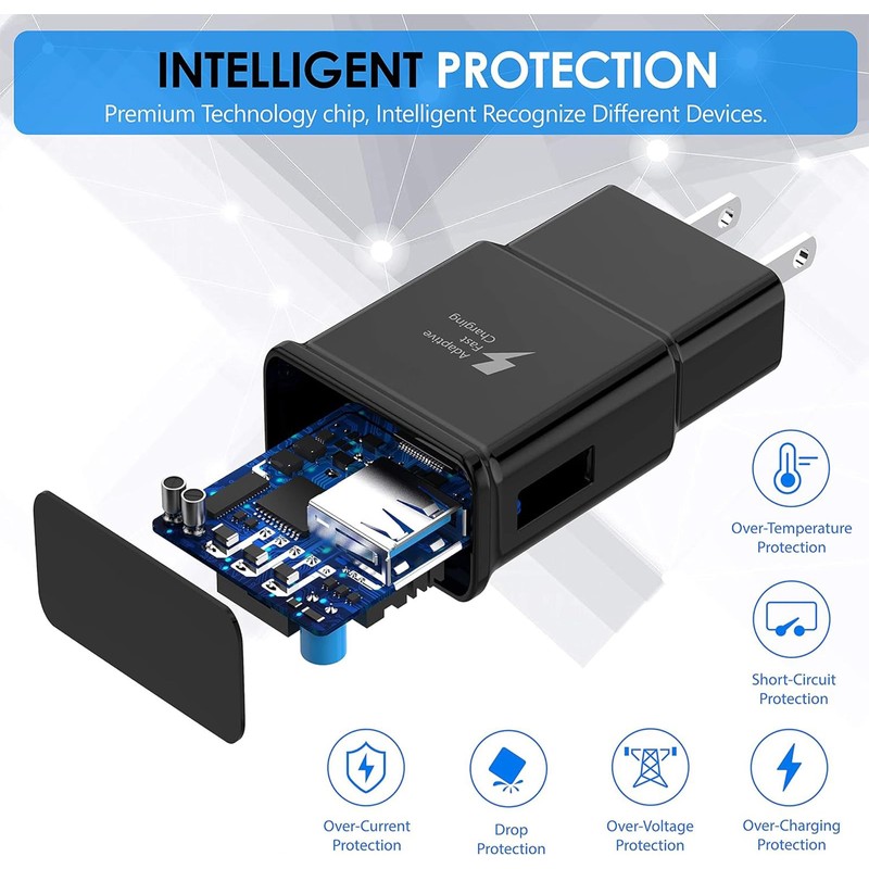 - ⚡【SAFETY CERTIFIED ADAPTER & CABLE】: Did we mention SAFETY enough? Yes we have certified with proof, and we test each batch over a dozen times for true active Intelligent circuit system that can automatic recognize different USB Support devices maximize the charging efficiency, and defeat extreme working condition, like overcharging/over-currents/overheating. High Impact Plastic also provides safer fireproof material for protecting Compatible with your your devices.