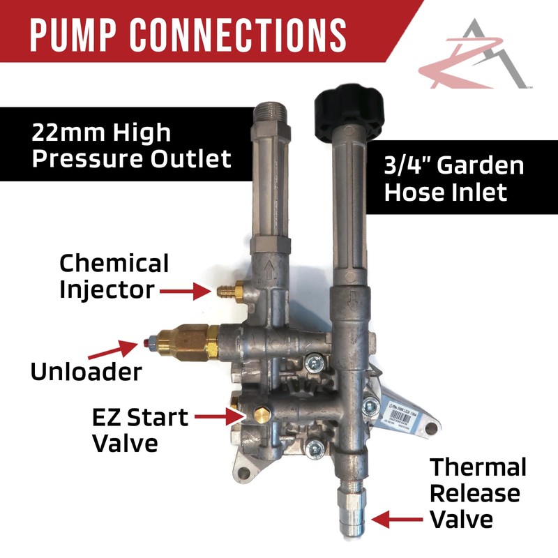 - Includes - (1) Vertical Pressure Washer Pump with Thermal Release Valve & Chemical Injector (both come installed); comes as shown in the first image (does NOT include engine shaft key or bolts)