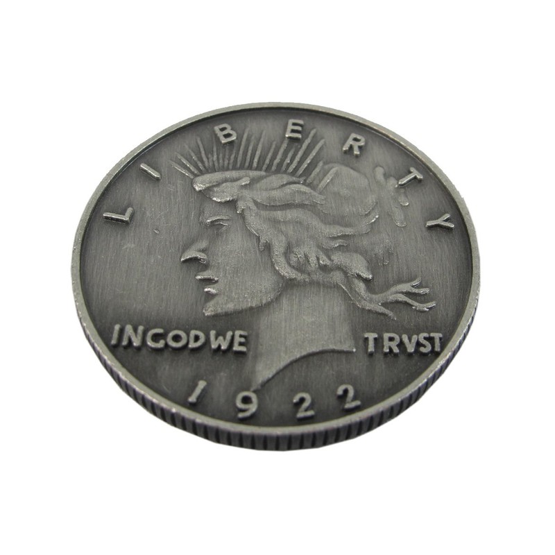 This is a reproduction of the 1922 peace coin make as closely resemble as possible to the one used. Both side of the coin show the head with one being burned and scratched. So you can start flipping the coin try getting the clean face instead of the burned one. By the way this is not make in China as Harvey have doubt about the quality of things manufacture there.