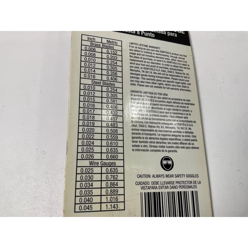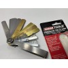 Hardened, tempered steel blades6 brass blades measure: 0.006 Inch (0.152 mm) to 0.016 Inch (0.406 mm)