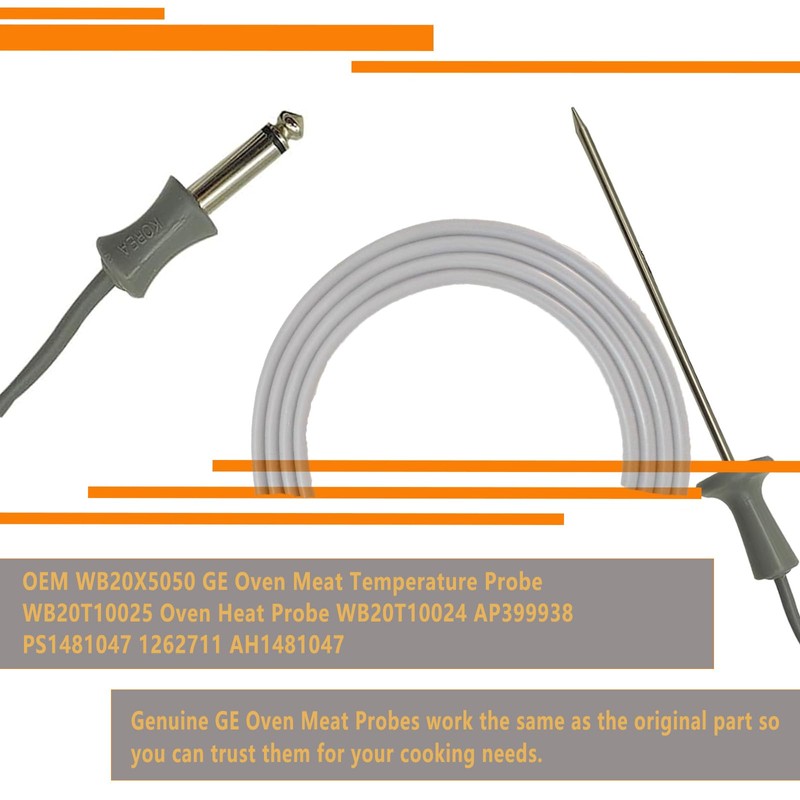 - The wb20x5050 Oven Meat Temperature Sensor Probe is a basic device for measuring the core temperature of meat while cooking. The upgraded model has a pointed metal stainless steel probe . It connects to the oven control board and display via a flexible heat resistant silicone cable. All relevant brands of ovens can use the meat probe for accurate temperature readings.
