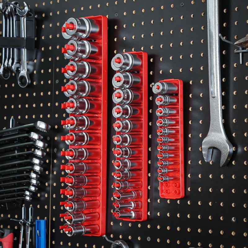 - Find It Fast: The clear size markings at the top of each labeled socket organizer peg make socket selection easy; No more digging through loose sockets in your tool drawer