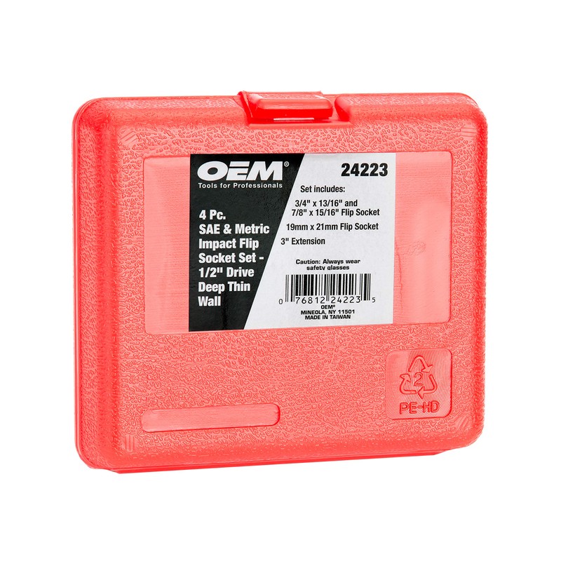 OEMTOOLS 24223 1/2 Inch Impact SAE and Metric Flip Socket Set, 4-Piece