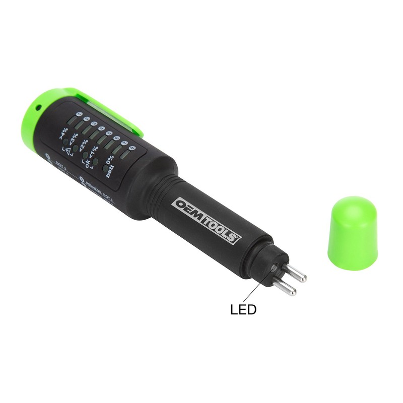 - BUILT-IN LED LIGHT: This automotive brake fluid tester has a built-in LED light to ensure tips are in proper contact with fluid in any kind of lighting